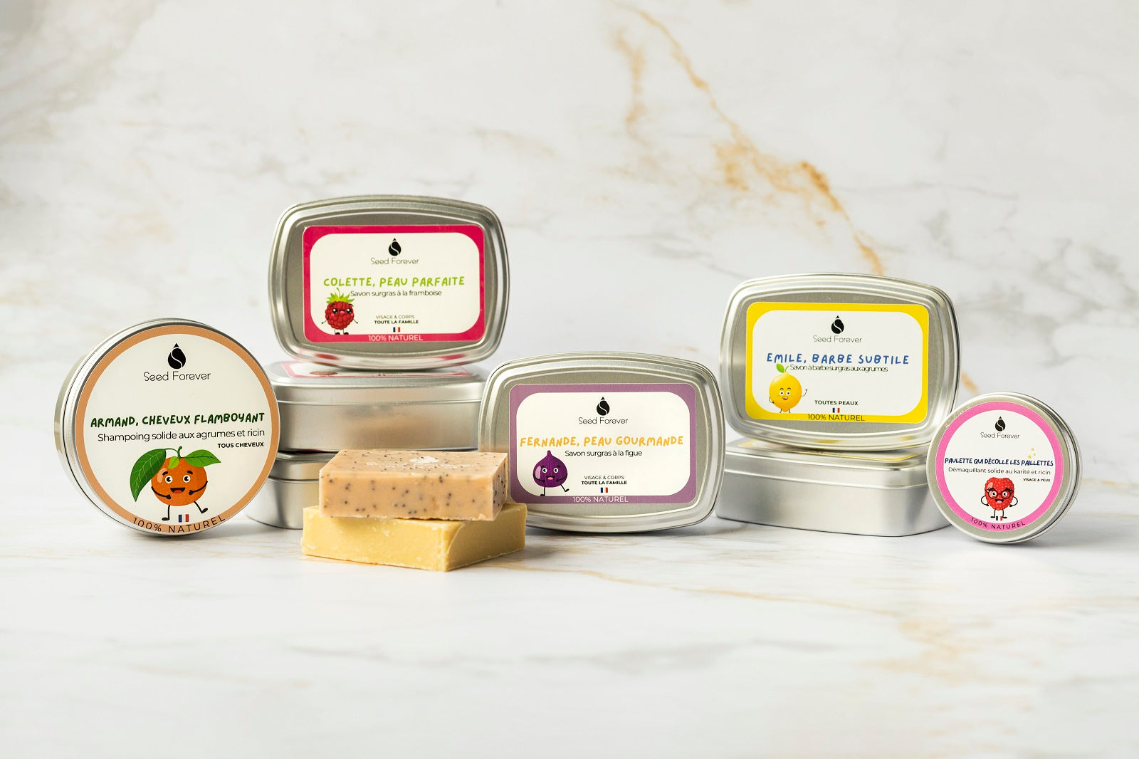 Chez Seed Forever, chaque soin a une personnalité. Emile s'occupe de votre barbe avec délicatesse. Marceline chouchoute les peaux sensibles de toute la famille. Maurice assure côté fraîcheur, sans produit douteux. Et ils ont tous un point commun : ils sont solides, 100% naturels, fabriqués à la main dans notre atelier à Lyon, et rechargeables pour durer longtemps sans laisser de trace.
